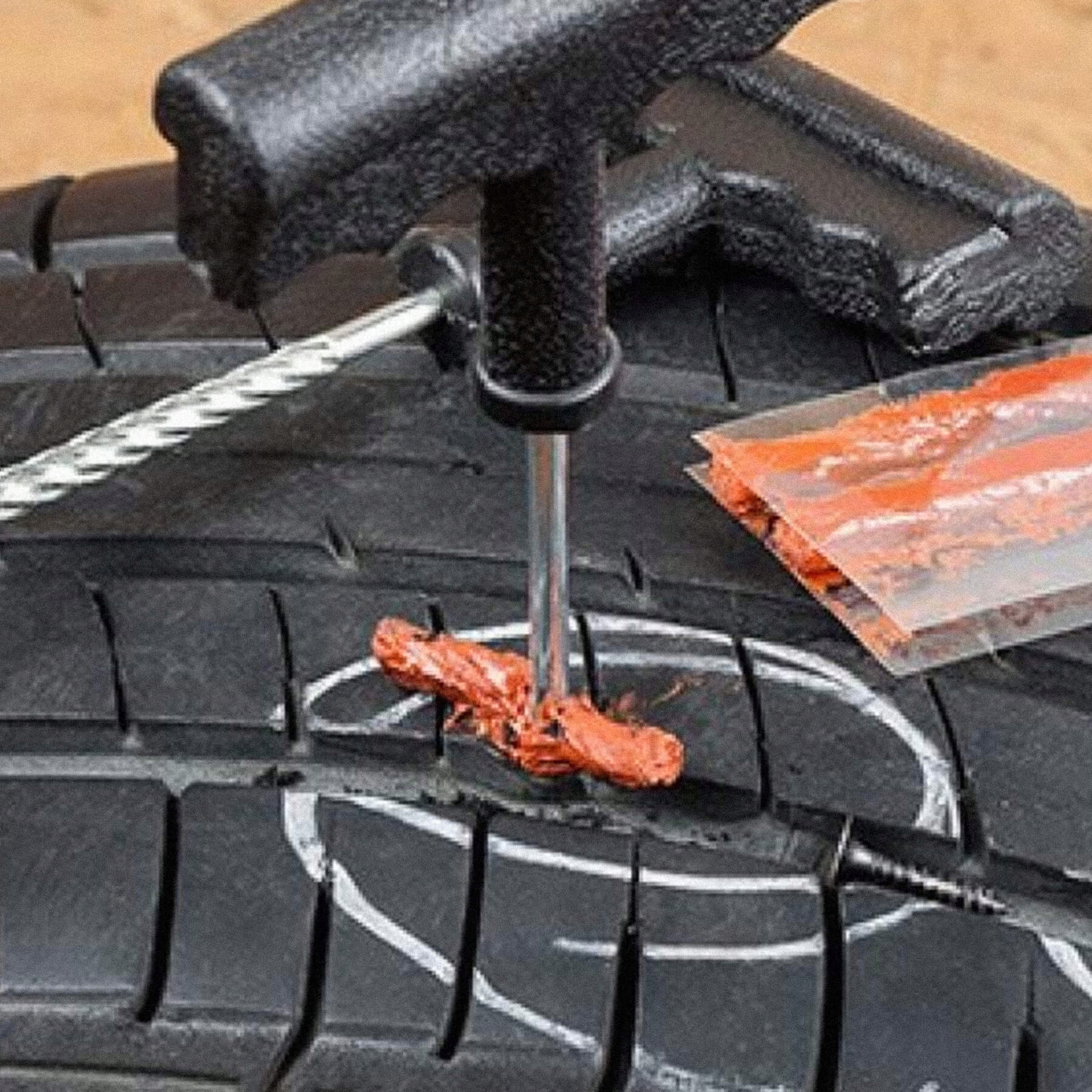 2⃣ чистите резак прикрепленным клеем и прилипайте в отверстие, оставленное в ногте в соответствии с углом, при котором этот гвоздь вошел в шину, чтобы хорошо заполнить отверстие клей
