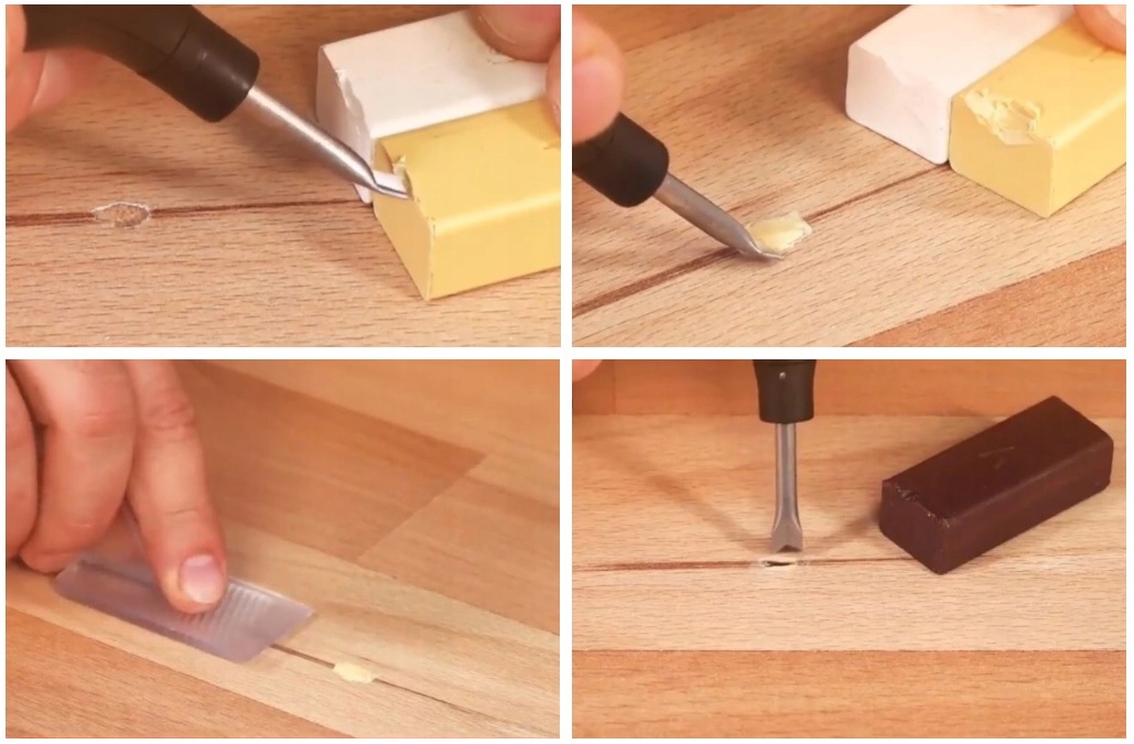 - набор позволяет быстро ремонтировать повреждения панелей, мебели, дверей и других изделий из дерева и материалов древесно-стружечных материалов