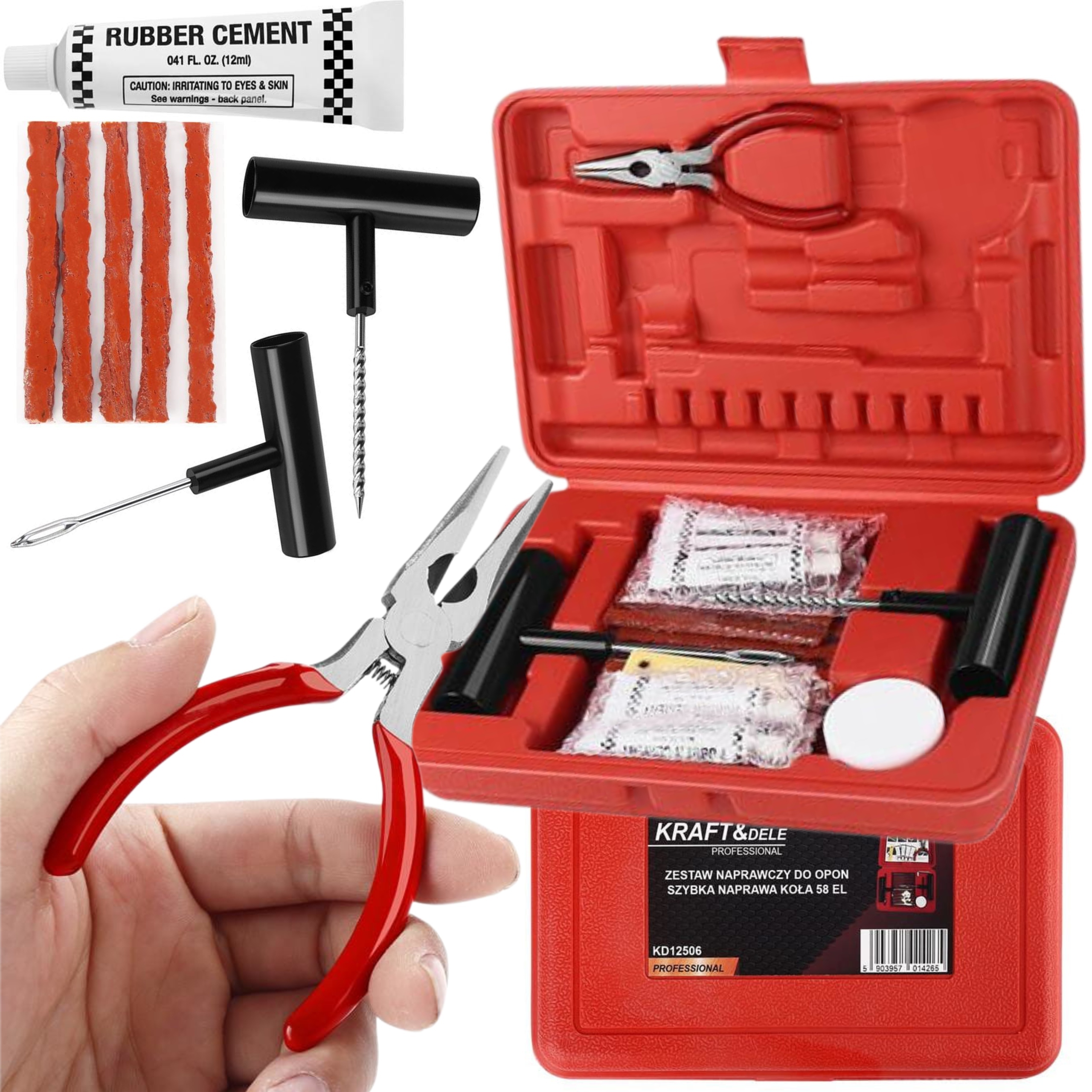 KD12506 Kraft & DeLe Tyres - это полное решение для быстрого и эффективного удаления бескамерных шин (бескамерных) шин. Необходимо в каждом автомобильном семинаре, службе шин, а также в багажнике транспортного средства в качестве помощи в чрезвычайных ситуациях на дороге.
