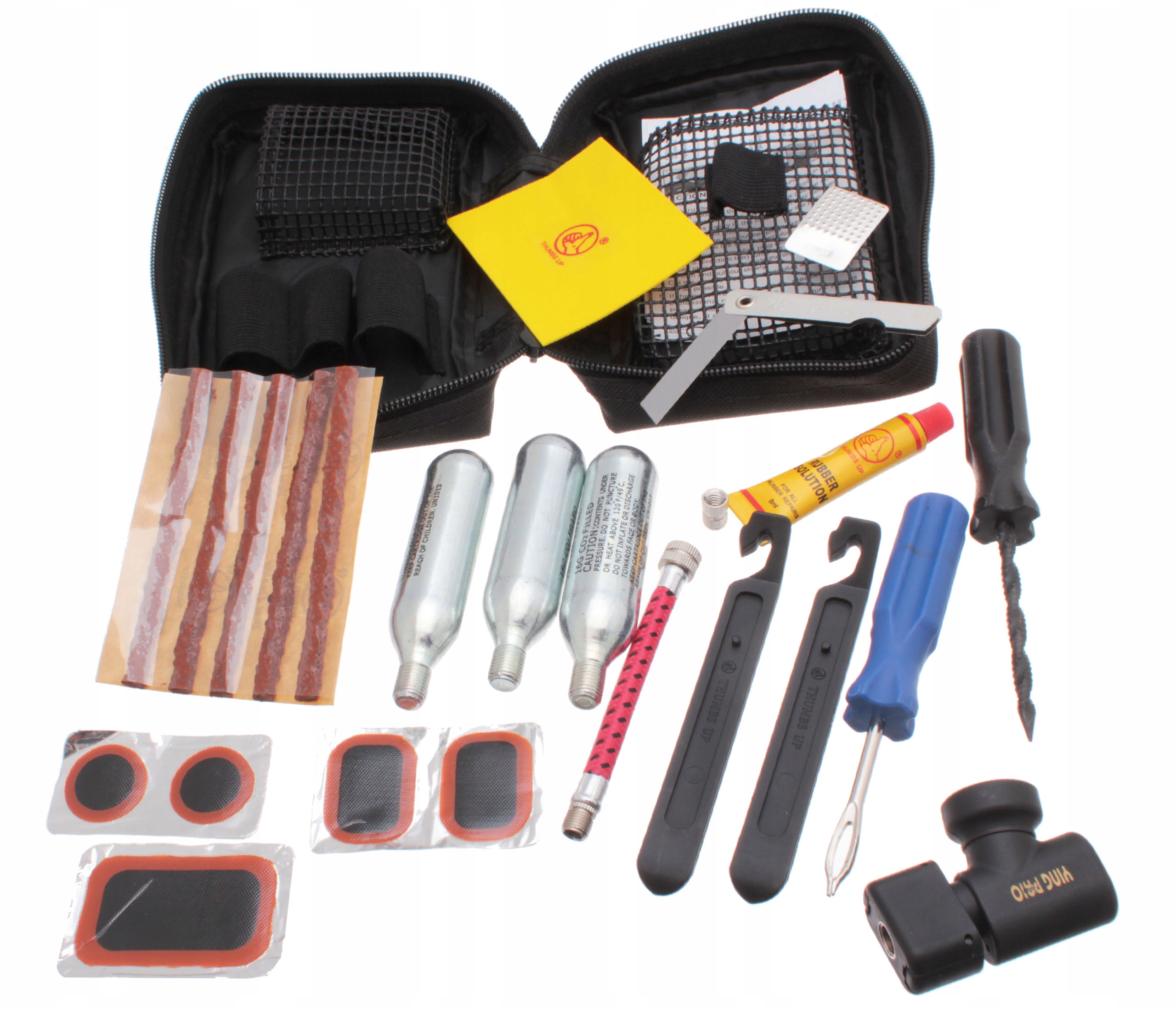 ОТЛИЧНЫЙ МОБИЛЬНЫЙ РЕМКОМПЛЕКТ ДЛЯ СКЛЕИВАНИЯ ШИН ПРЯМО «НА ДОРОГЕ». БЛАГОДАРЯ НЕБОЛЬШИМ РАЗМЕРАМ ВСЕГО НАБОРА, ВЫ ВСЕГДА МОЖЕТЕ БЕРИТЬ ЕГО С СОБОЙ, ДАЖЕ ЕСЛИ ПУТЕШЕСТВИЕ – ПРОСТО ПРОСТО ПОЕЗДКА. КОМПЛЕКТ ПОЗВОЛЯЕТ ИСПРАВИТЬ ЛЮБЫЕ ПОВРЕЖДЕНИЯ, НО ТАКЖЕ НАДУВАТЬ УЖЕ ПРИКЛЕЕННУЮ ШИНУ И ПРОДОЛЖАТЬ ДВИЖЕНИЕ, НЕ ПОСЕЩАЯ МАСТЕРСКУЮ. ПОЭТОМУ МЫ ИСКЛЮЧАЕМ НЕОБХОДИМЫЕ РАСХОДЫ, СВЯЗАННЫЕ С ТРАНСПОРТИРОВКОЙ МОТОЦИКЛА ИЛИ ДРУГОГО ТРАНСПОРТНОГО СРЕДСТВА