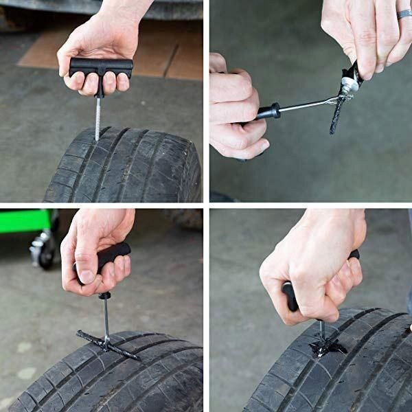 Набор позволяет очень быстро отремонтировать гвоздевые повреждения на всех типах шин. Полезное дополнение к любому шиномонтажу – быстрый и дешевый ремонт. Достаточно всего нескольких минут, чтобы шина стала пригодной для дальнейшей эксплуатации.