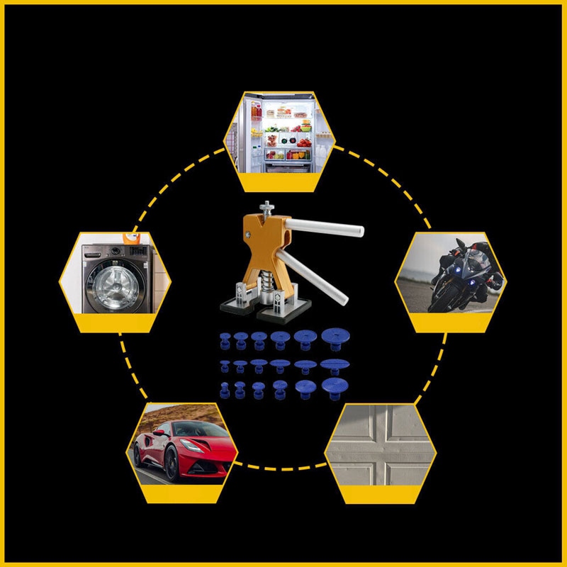 Наборы для ремонта кузова автомобиля специально разработаны для вмятин различной формы. Подходит для холодильников, автомобилей, мотоциклов, грузовиков, дверей, стиральных машин и т. д.