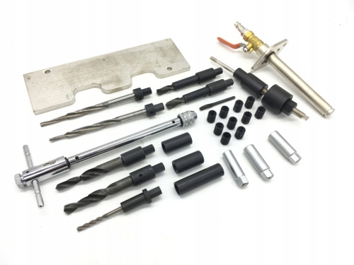 Позволяет повторно просверлить или отремонтировать резьбу свечи накаливания и очистить отверстие электрода. Точная глубина и угол сверления достигается с помощью направляющих втулок.