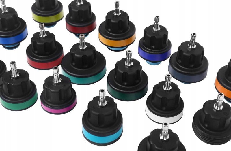 Комплект позволяет обнаружить утечки и выполнить быструю замену охлаждающей жидкости. Благодаря колпачкам разного цвета и номерам выбор подходящего адаптера становится интуитивно понятным и быстрым. Тестер совместим с большинством марок и моделей, представленных на рынках Европы, Америки и Азии, что делает его универсальным диагностическим инструментом.
