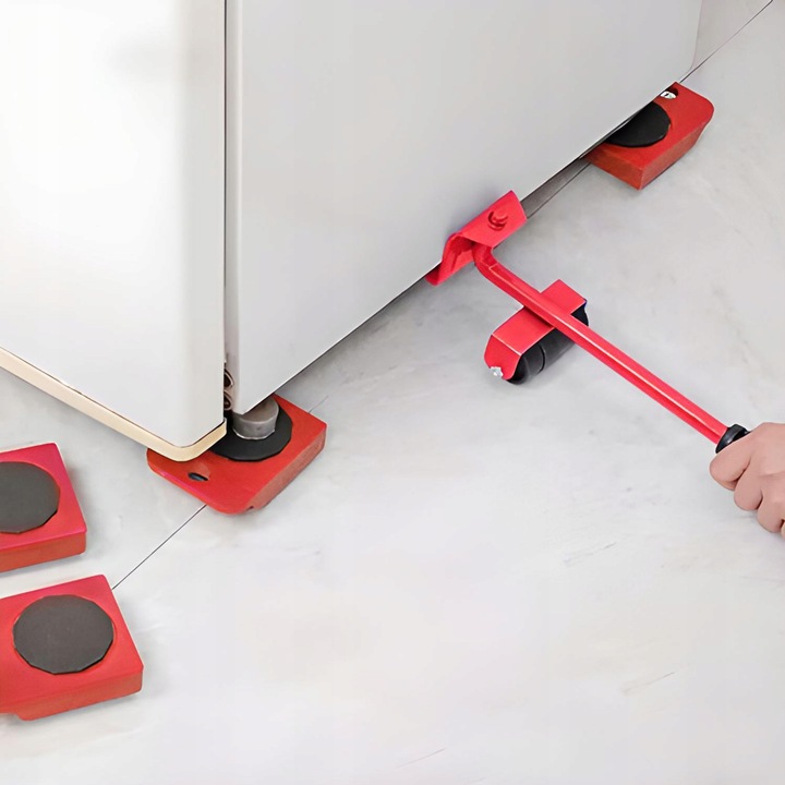 В комплект входит стальной рычаг, облегчающий передвижение поднимите мебель, чтобы задвинуть под нее ролики для транспортировки.