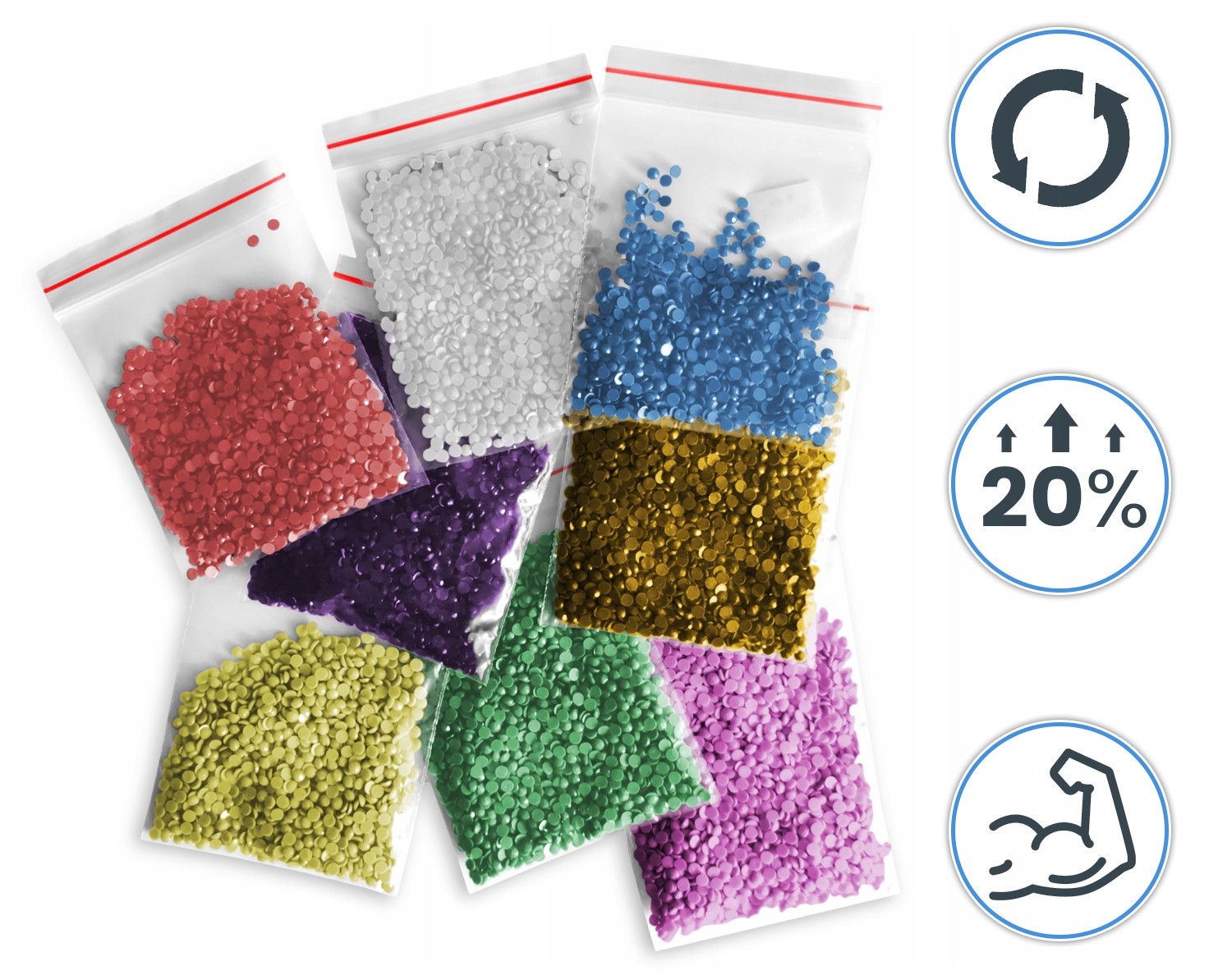 Для изготовления вышивки используются два типа пакетов: термосварные, которые можно открыть только один раз, и тогда из них вылетают кристаллы, создавая ненужный беспорядок, и те, которые мы используем: авоськи, которые можно открывать и закрывать бесконечно! Что вы предпочитаете?
