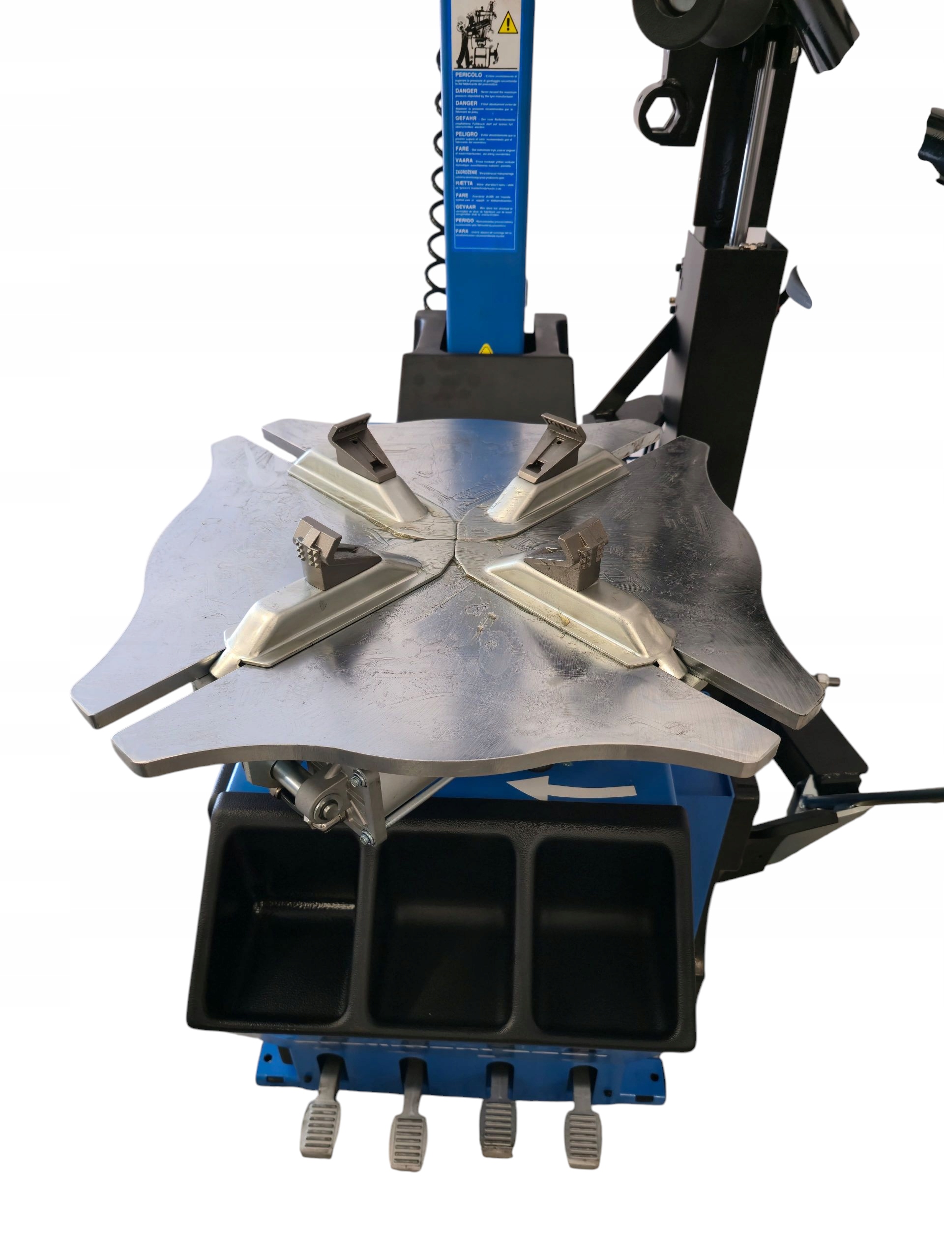 - Универсальность: Благодаря 4-кулачковому патрону и дополнительным аксессуарам шиномонтажный станок работает с широким спектром шин, включая шины Run Flat и шины на легкосплавных дисках.