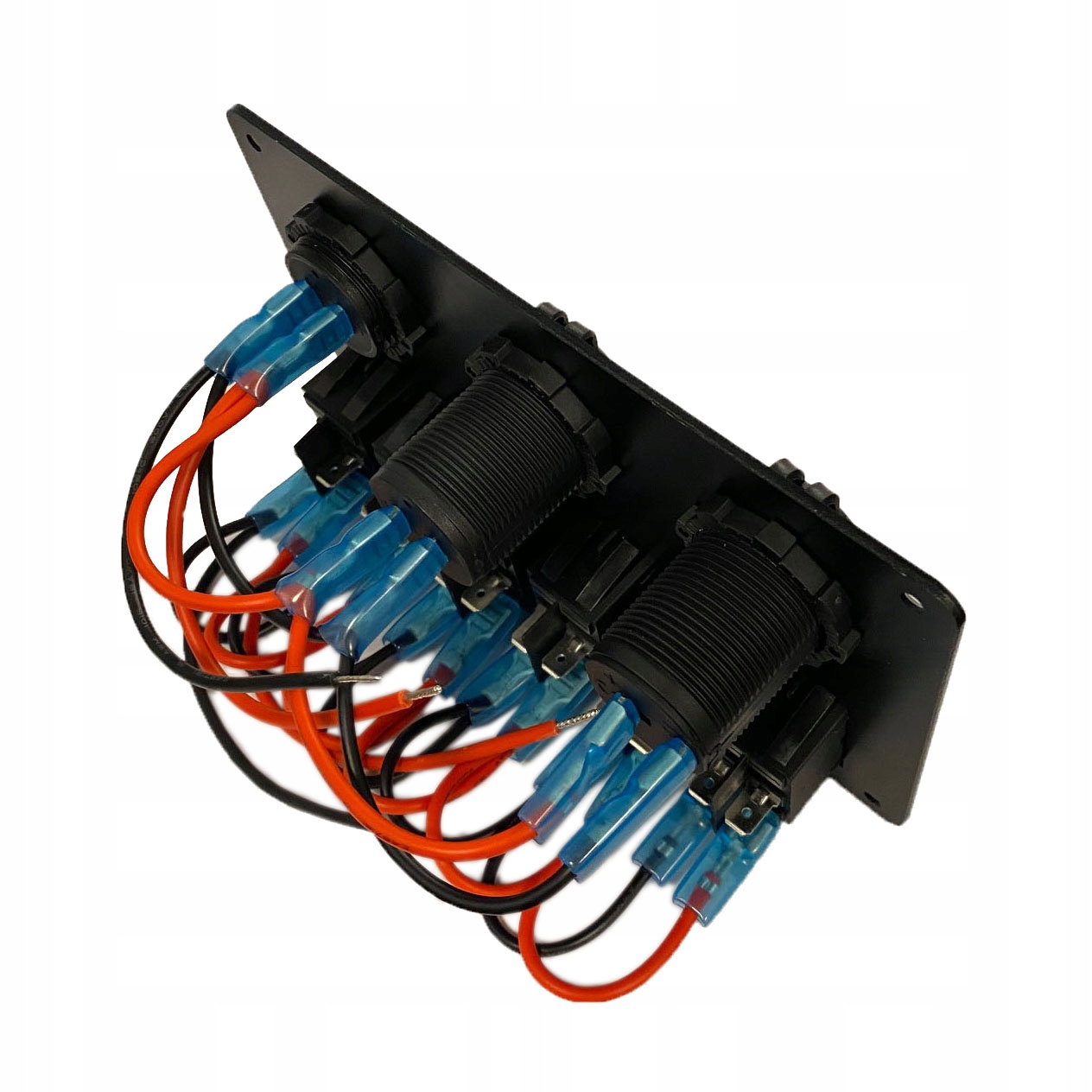 Яхтенное распределительное устройство, с зеленой подсветкой. Одна панель с вольтметром, гнездами USB и прикуривателя. Крепежные винты в комплекте. Возможность поменять местами розетки и вольтметр для установки распределительного устройства вертикально.