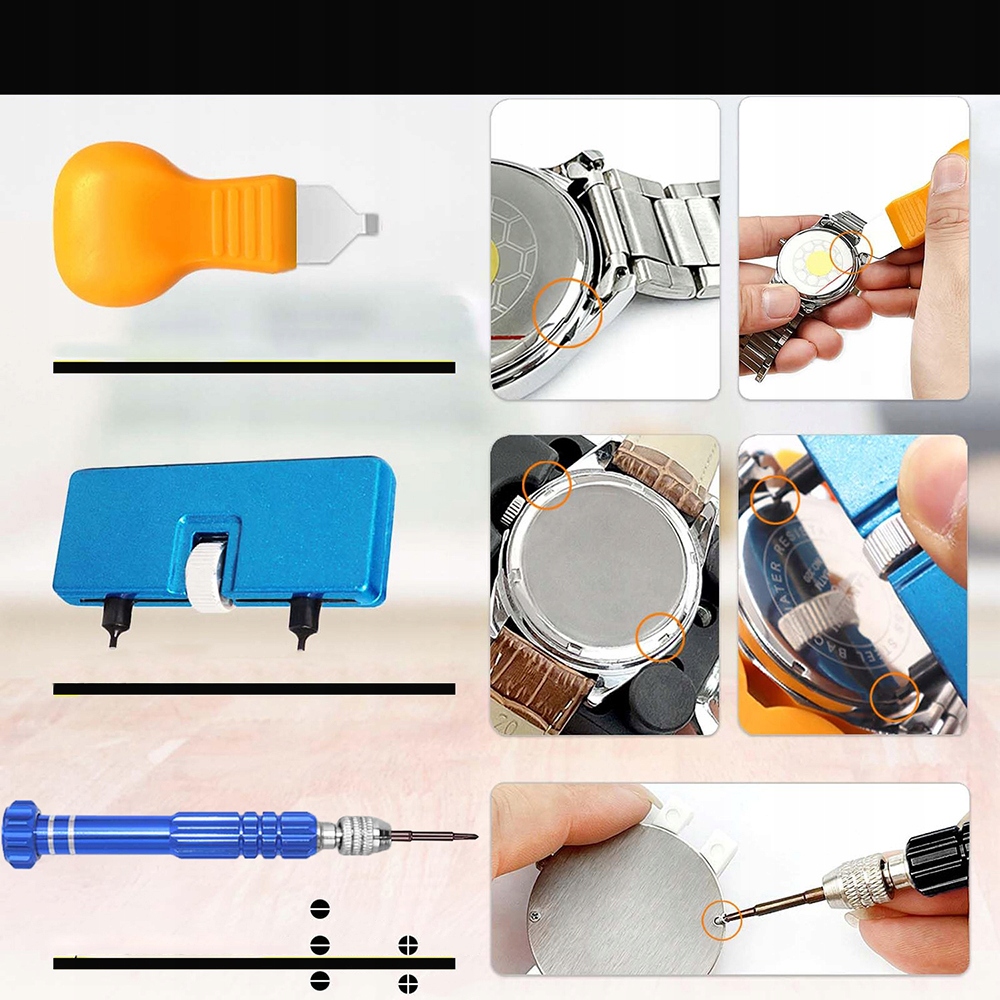 – Комплексный набор инструментов для ремонта часов, который решает большинство проблем и подходит для всех типов часов.