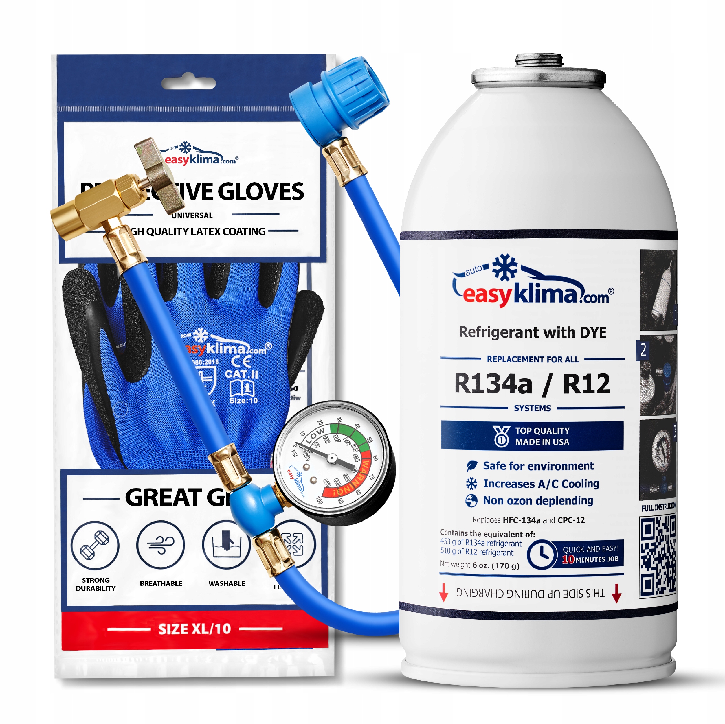 Газ, входящий в комплект, является безопасной заменой хладагента R134a, что позволит быстро и легко заправить кондиционер.