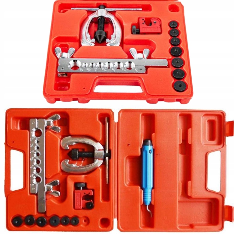 Набор из 11 элементов с фрезой польского бренда Kraft&Dele незаменим в каждой мастерской – набор для обжима алюминиевых и медных тормозных магистралей и изготовления конических соединительных фланцев.