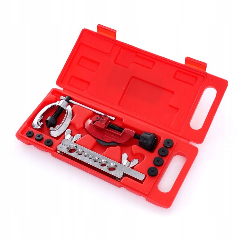 Набор из 10 элементов с фрезой польского бренда Kraft&Dele необходим в каждой мастерской – набор для резки алюминиевых и медных тормозных магистралей и изготовления конических соединительных фланцев.
