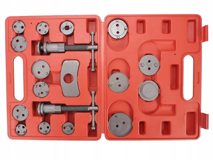 Профессиональный, большой, набор из 18 предметов для снятия/выдавливания поршней в цилиндрах тормозной системы, необходим при ремонте автомобилей, оснащенных дисковыми тормозами.