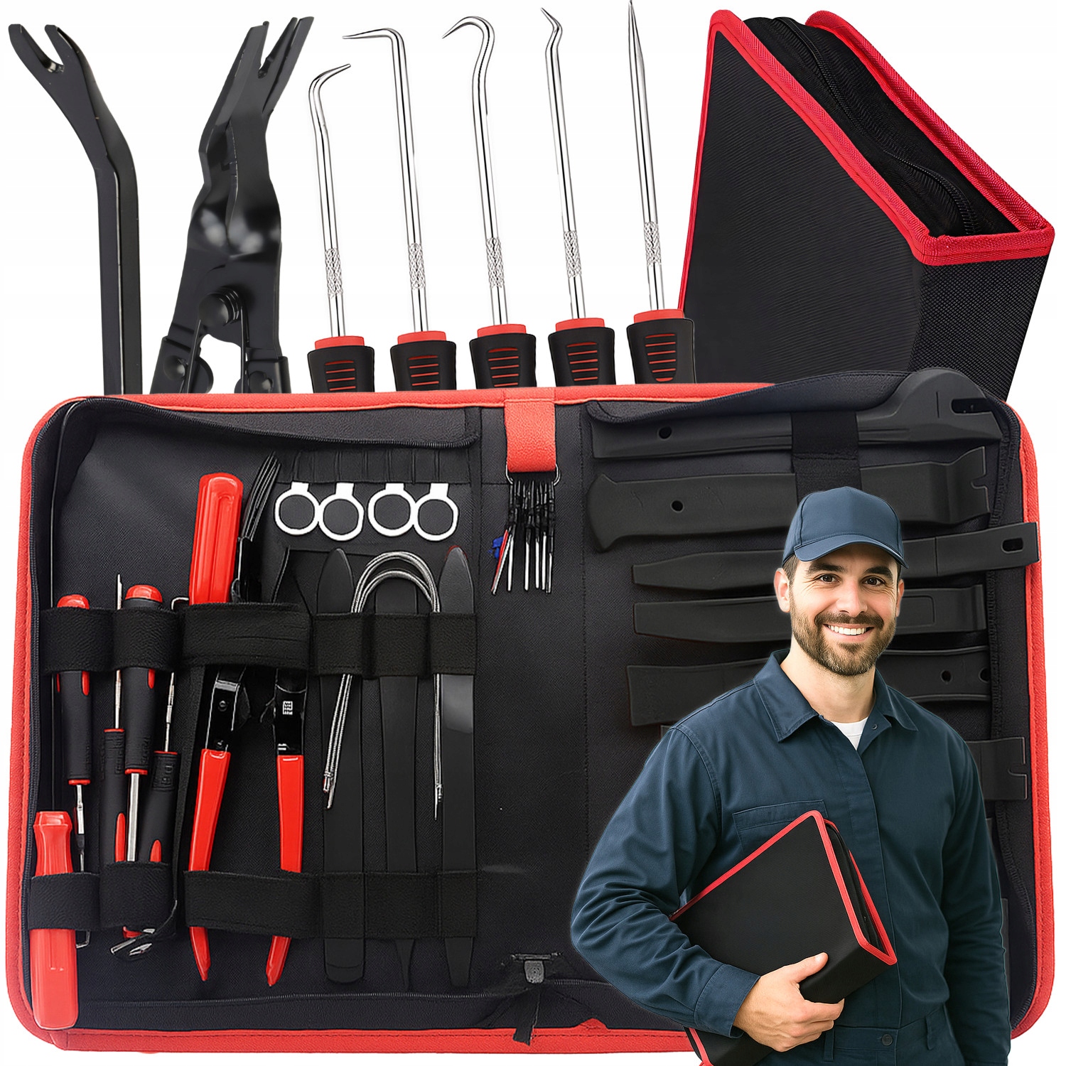 ⭐ НАБОР СЪЕМНИКОВ И КЛЮЧЕЙ – В набор входят инструменты различной формы, идеальные для демонтажа обивки, зажимов и пластиковых элементов в автомобиле.