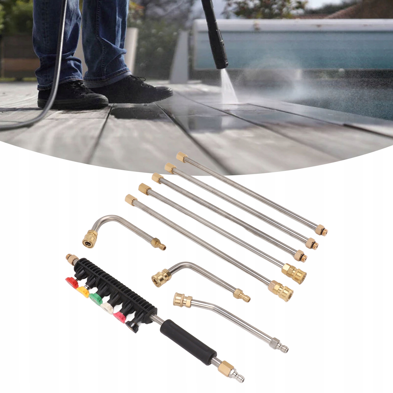 НАБОР ДЛИННЫХ УДЛИНЕННЫХ КОПЬЕЙ ДЛЯ МОЕЧНОЙ МАШИНЫ ПОД ДАВЛЕНИЕМ С УГЛОВЫМИ ФОРСУНКАМИ С 6 РЕМНЯМИ