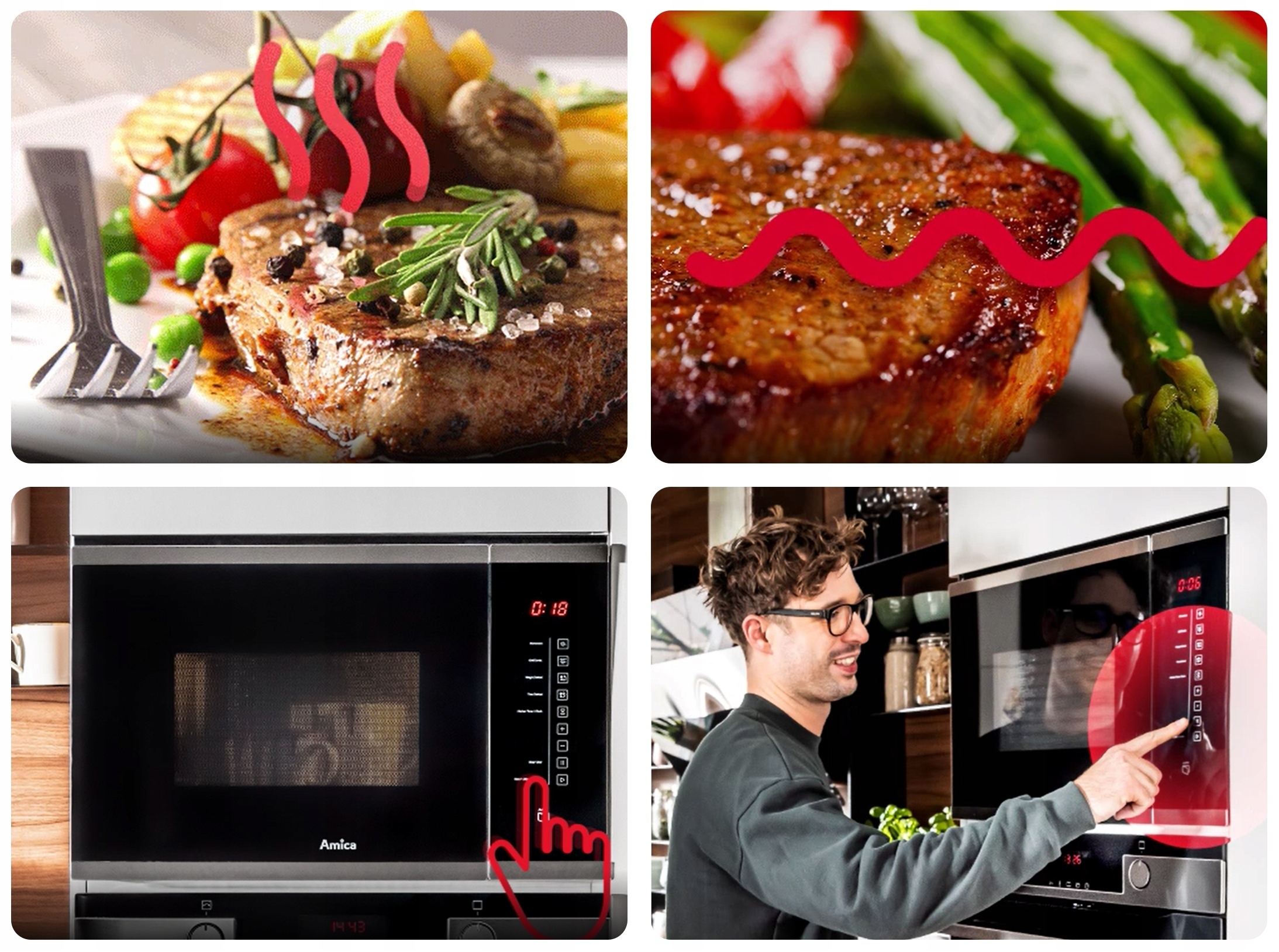 Несколько точек микроволновой эмиссии в сочетании с вращающейся пластиной позволяют равномерно нагреть все блюдо, как снаружи, так и внутри. Процесс: сначала разморозить, а затем нагревать - без прерывания работы микроволновой печи. Это экономит время и удобство использования.
