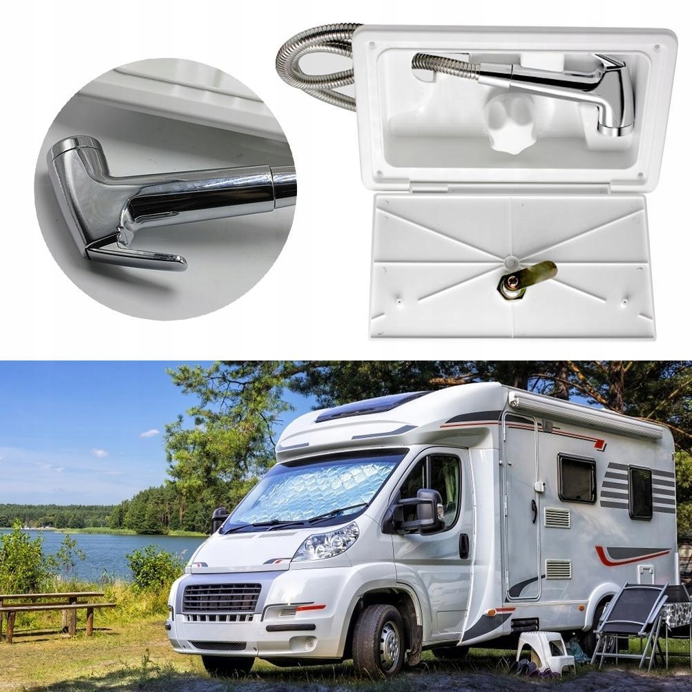 🎫 3. Закройте клапан подачи воды и слейте воду из водопровода. Выньте старый смеситель для ванной и отрегулируйте размер отверстия коробки до нужного размера. Прикрепите душевую кабину на открытом воздухе к боковой части кемпера с помощью крепежных винтов. Подсоедините водопровод к разъему крана.