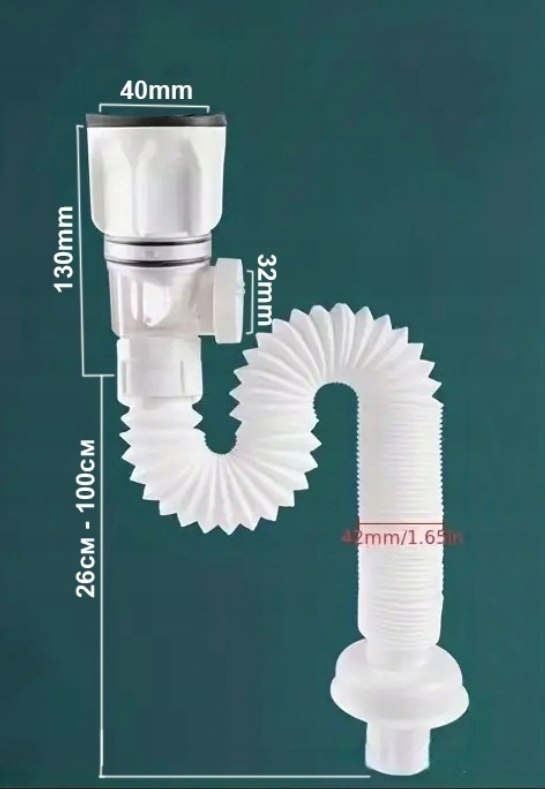 ✅ Универсальное использование: Сифон подходит к большинству стандартных умывальников, что делает набор универсальным и простым в установке.
