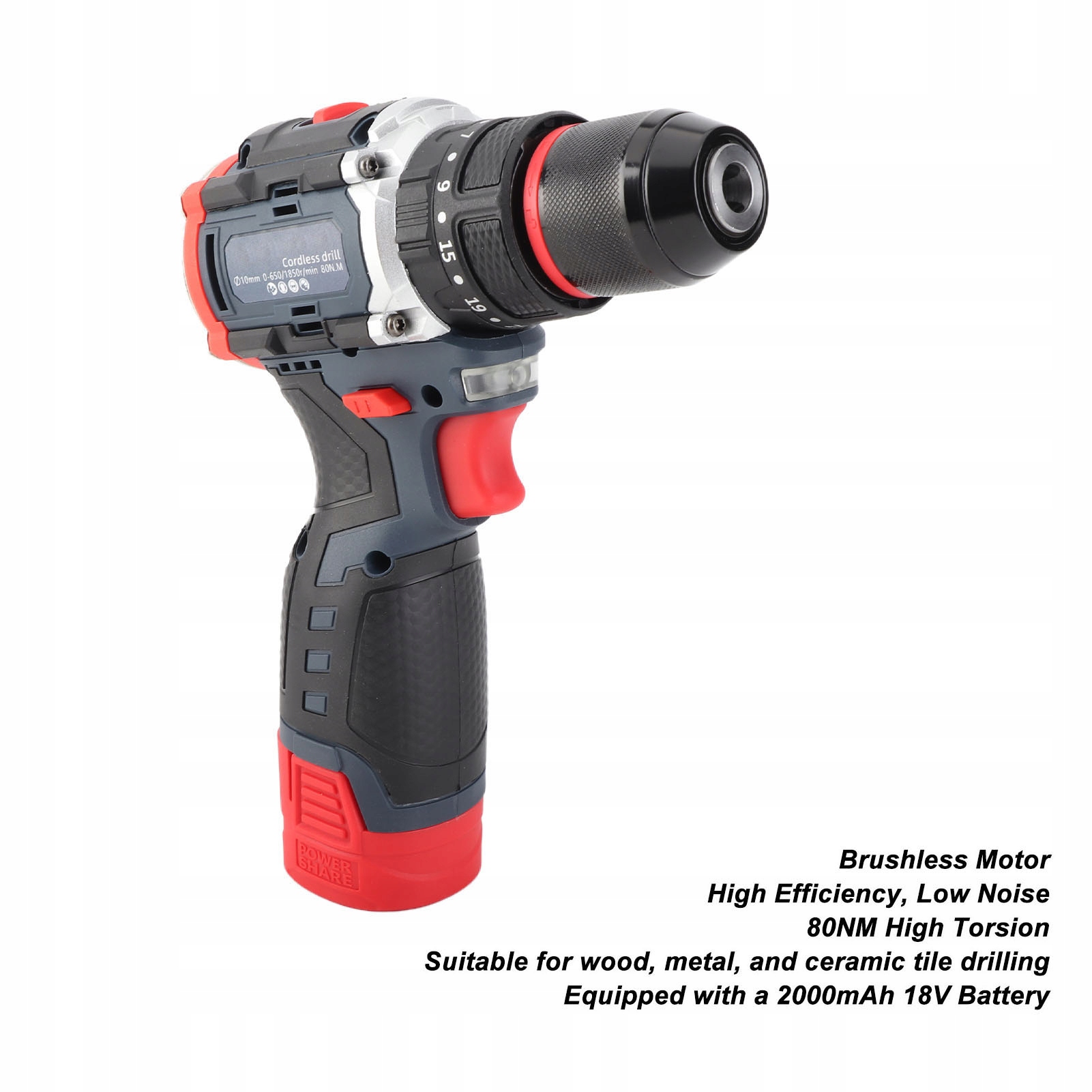 2. Высокая крутка: Эта аккумуляторная электрическая дрель обеспечивает высокую крутку при длине волны 80 нм, что может удовлетворить большинство ваших потребностей в сверлении, будь то легкое или тяжелое сверление. Катушка толщины меди обеспечивает высокую эффективность.