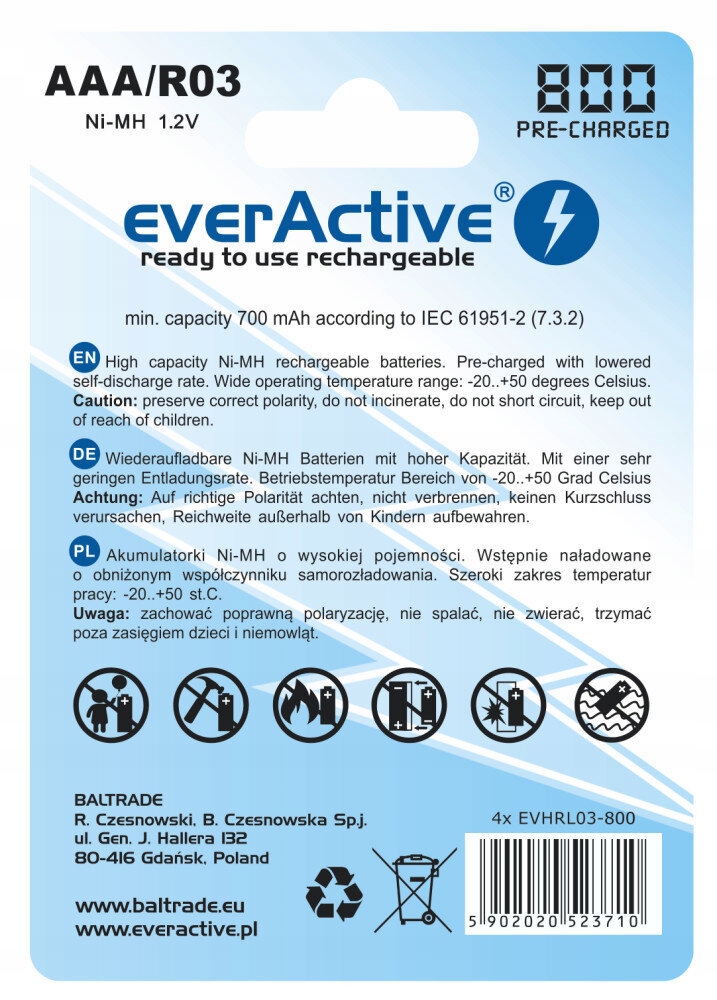 В комплект также входят отличные аккумуляторы EverActive, которые пригодятся в каждом доме, офисе или поездке на природу!