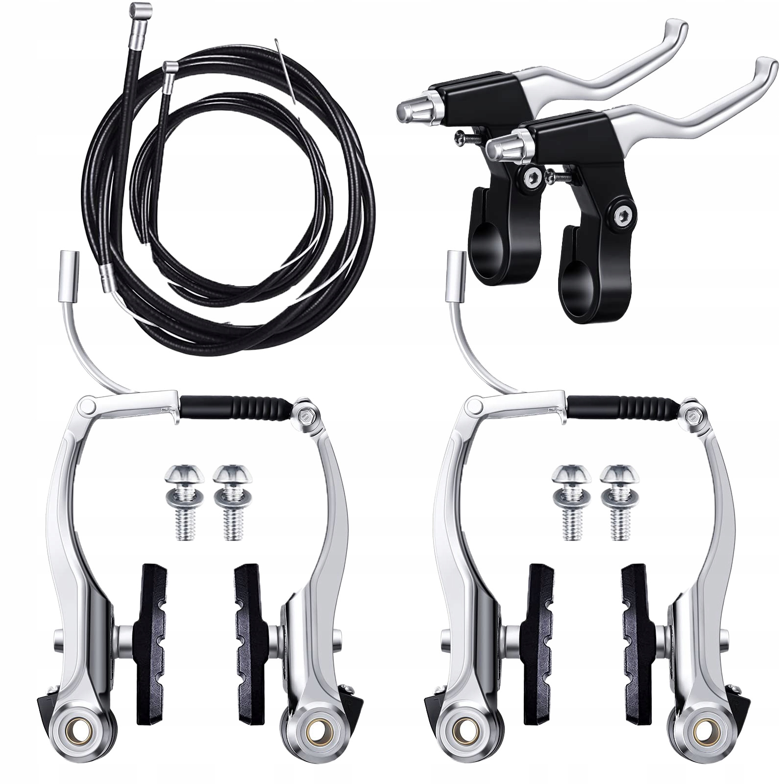 Комплект тормозов передний, задний, V-brake, тросы, колодки, рычаги MTB