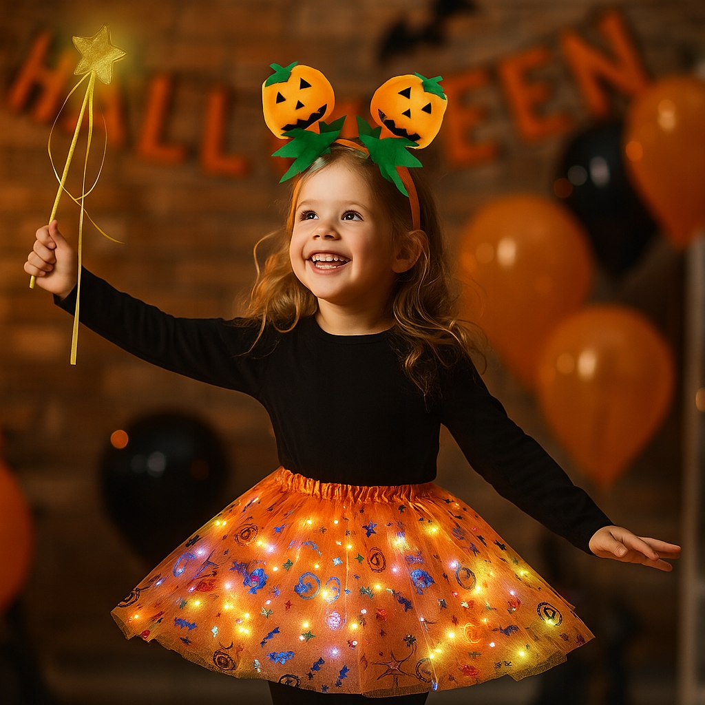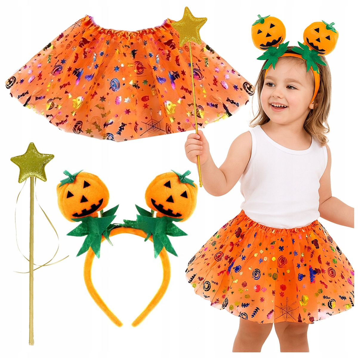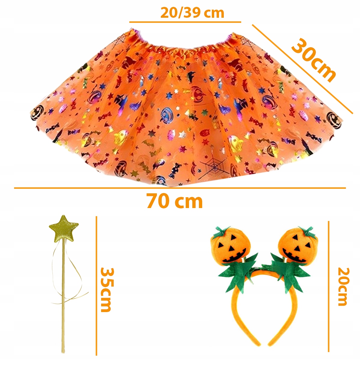 <ул>✅ НАБОР «ХЭЛЛОУИН 4-в-1» – идеальный карнавальный костюм: юбка, повязка на голову, палочка, светодиодная гирлянда