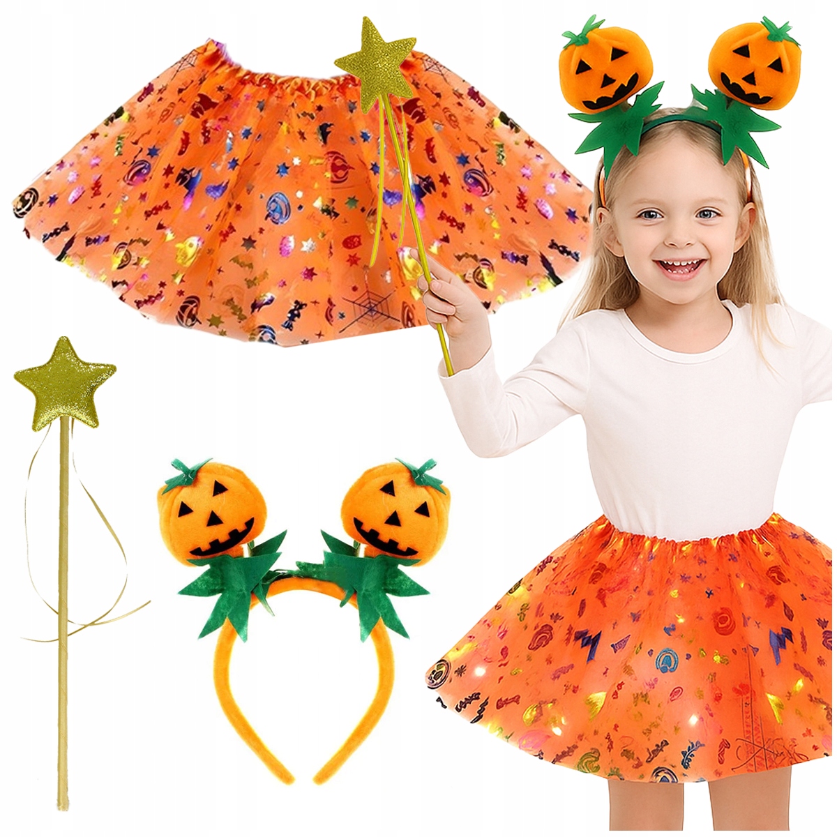 НАРЯД КОСТЮМ ТЫКВЫ ПЛАТЬЕ НА ХЭЛЛОУИН ВЫПУСК СВЕТОДИОДНАЯ ЮБКА ПАЛОЧКА ПОВЯЗКА НА ГОЛОВУ