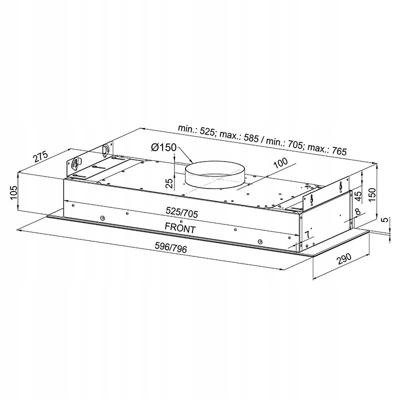 Встраиваемая кухонная вытяжка Silentio 60.2 не имеет двигателя. Он предназначен для работы с внутренним двигателем, расположенным на чердаке или снаружи здания: TW1.2, TW2.1, TW3.1 и TZ1.1