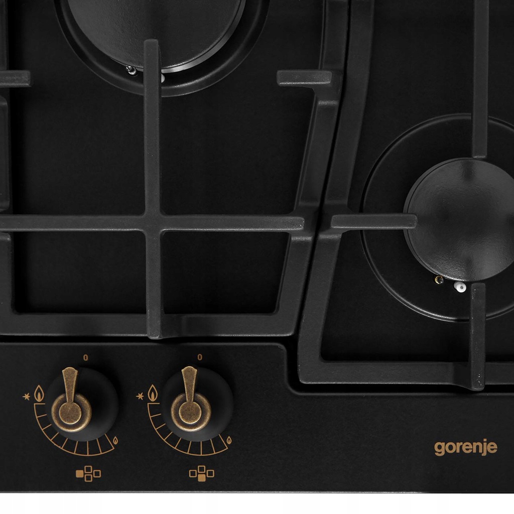 Газовая варочная панель шириной 60 см, с 4-мя конфорками общей мощностью 9550 Вт, собственным управлением, тройной чугунной решеткой и защитой от утечки газа.