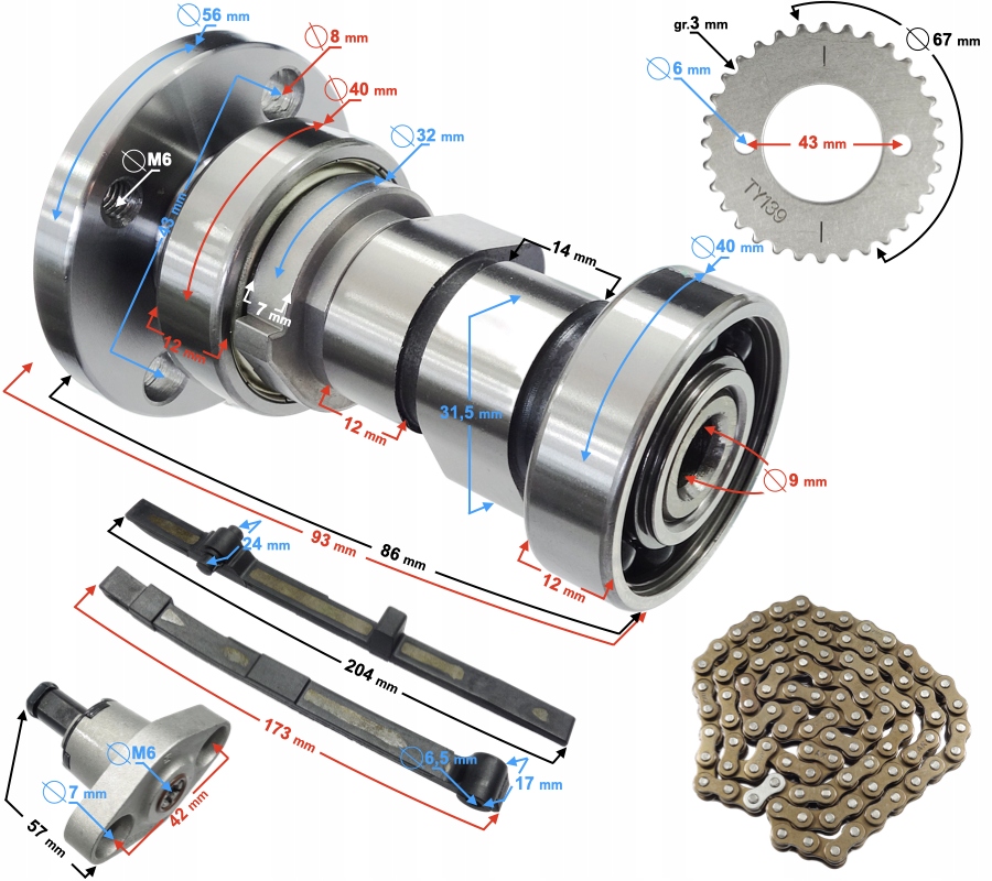 КОМПЛЕКТ ГРМ ДЛЯ ДВИГУНА JUNAK ADV 121 RACER S 125 BARTON GT STREET-R 125