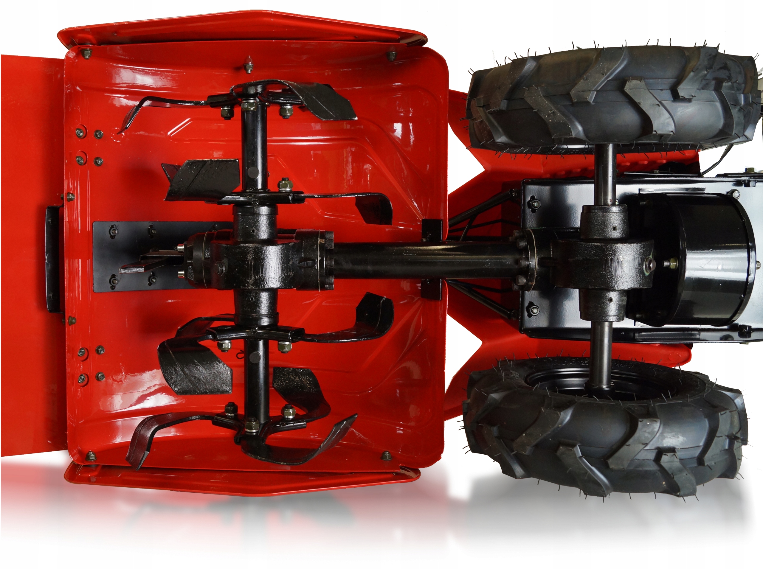 - КОЛЕСНЫЙ ПРИВОД - Предотвращает рывки машины, прекрасно поглощает усилия, передаваемые от рабочих ножей, снижает усилия при работе и обеспечивает точное рыхление почвы за первый рабочий проход.