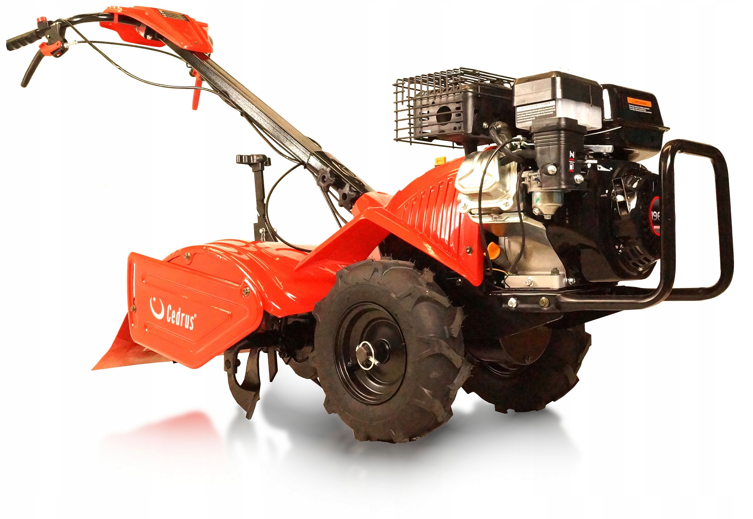 Мотокультиватор имеет транспортировочные колеса, облегчающие перемещение, и регулируемую высоту рычага управления, благодаря чему высоту которого можно подогнать под рост пользователя.