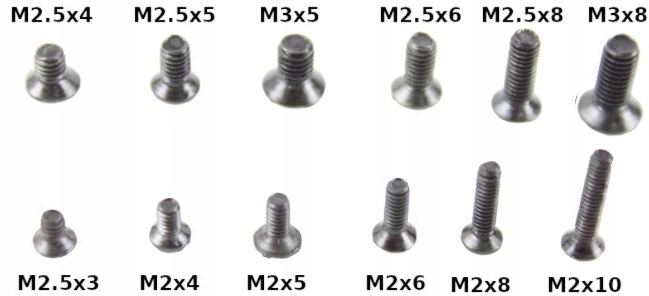 В комплект входят винты разных размеров, которые часто используются на ноутбуках. К ним относятся различные типы винтов, такие как M2, M2,5, M3 и другие, для удовлетворения различных потребностей в монтаже и креплении внутри вашего ноутбука.