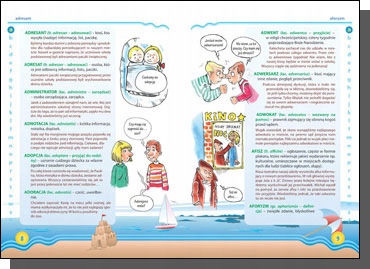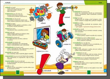 Весь словарь содержит около 6000 статей в англо-польской части и является единственным на рынке с польско-английской частью. Все слова имеют упрощенное произношение, чтобы каждый ребенок знал, как прочитать данное слово. Дополнительным преимуществом являются красиво иллюстрированные тематические доски - цвета, семья, одежда, части тела.