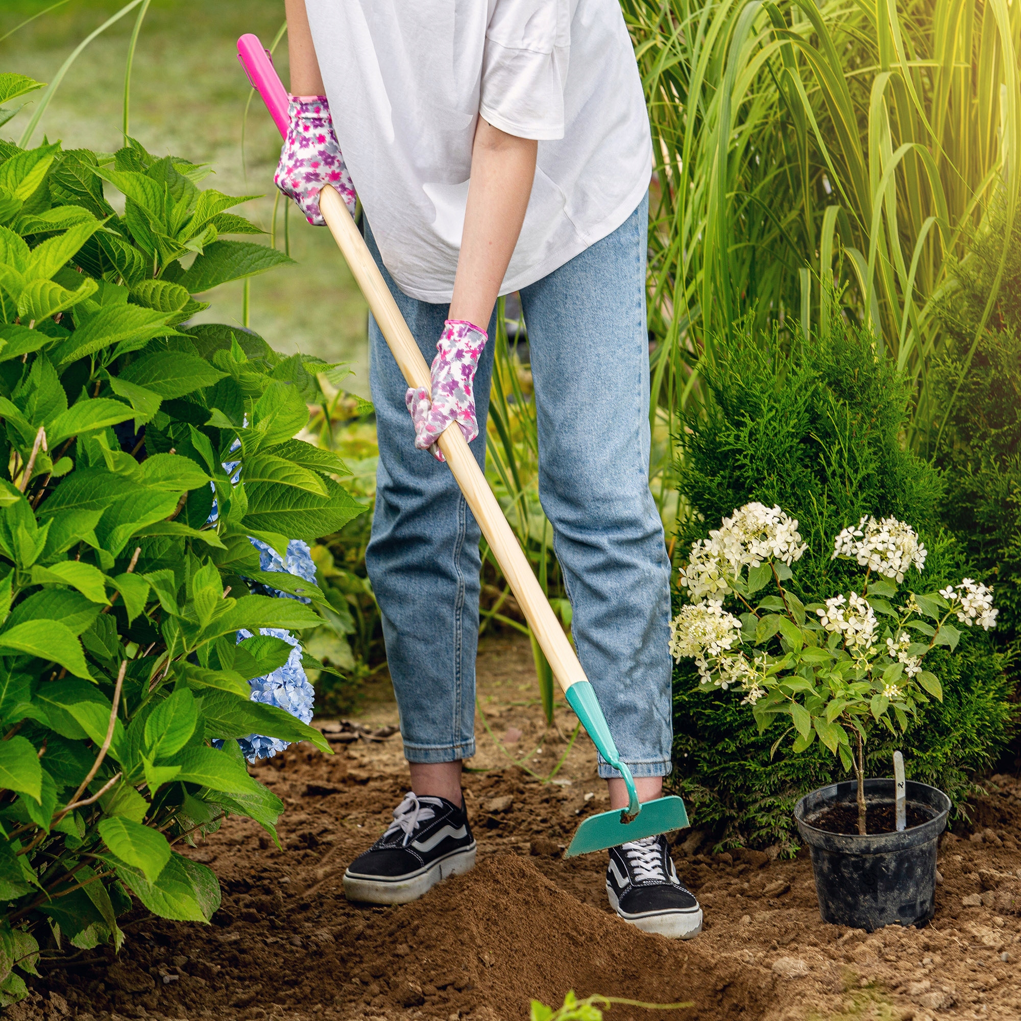 Благодаря острой и профилированной рабочей части легко втыкается в землю. Закругленный кончик лопаты также полезен для обрезки сорняков и ветвей вьющихся растений, таких как розы или плющ. Длинная металлическая ручка инструмента помогает сохранять вертикальное положение тела во время работы.