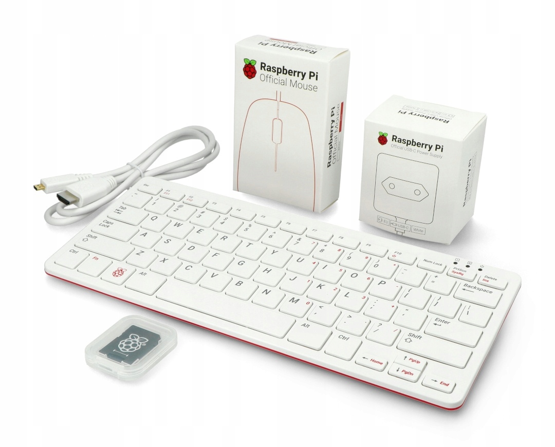 В комплект входит Raspberry Pi 400 EU WiFi, 4 ГБ ОЗУ, 1,8 ГГц + официальные аксессуары