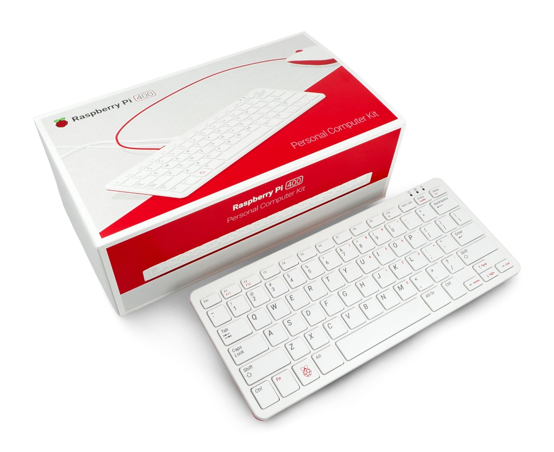 В комплект входит компьютер «все в одном», интегрированный с клавиатурой. Внешний вид устройства отсылает к компьютеру Commodore 64. Raspberry Pi 400 оснащен четырехъядерным процессором ARM Cortex A72, 4 ГБ оперативной памяти, портом Ethernet, тремя портами USB, двумя портами microHDMI и 40-контактным разъемом GPIO. В комплект также входит официальная оптическая мышь, блок питания, карта microSD на 16 ГБ и кабель microHDMI.