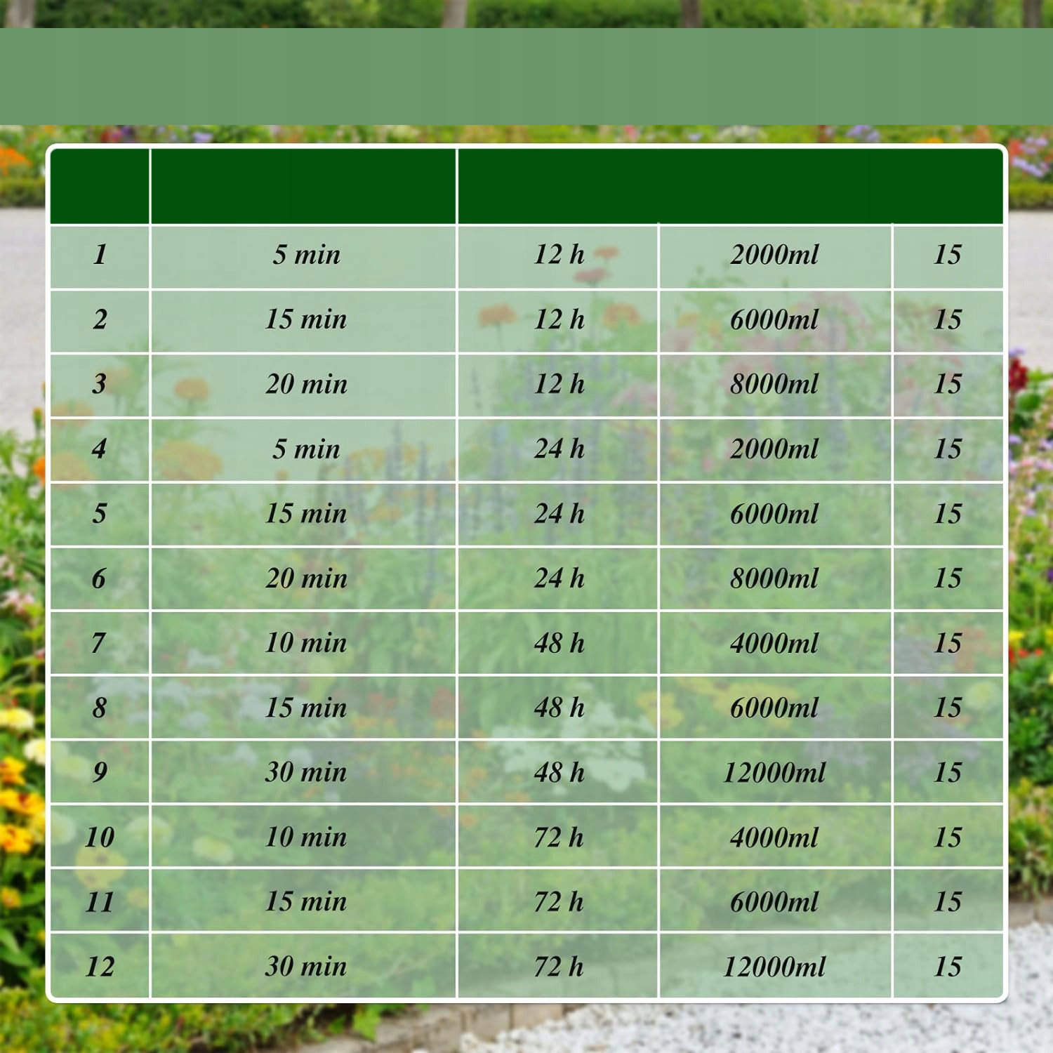 🌞🌞 【Многие режимы таймера】 Режим синхронизации автоматической солнечной ирригационной системы может регулировать 12 режимов синхронизации. Инструкции, отображаемые на экране, четко видны, и используя 2 кнопки, вы можете выбрать частоту и продолжительность орошения. Время полива составляет 5/10/15/20/30 минут, а частота полива составляет 24.12.48/72 часов. По сравнению с традиционным капельным орошением, он имеет 6 дополнительных режимов капельного орошения, которые могут сэкономить 90% воды, более научные и удобные и не требуют сетевой мощности.