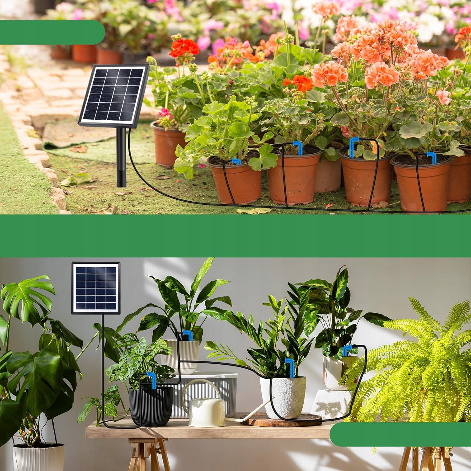 🌞🌞 【Автоматический солнечный свет】 Солнечная ирригационная система состоит из контроллера, насоса, таймера, змеи и капли, с технологией солнечной энергии, соединяет набор кабелей и змеи для подготовленного ирригации виаду будет автоматически поливать растения. Предназначен для полиции праздничного, интенсивной работы и переменной погоды.