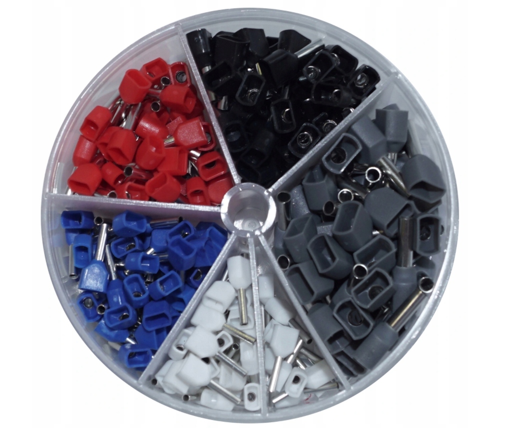 В комплект содержится 250 шт.. наконечники различных размеров, различающиеся по цвету, идеально подходят для заделки зачищенных концов проводов (веревок).
