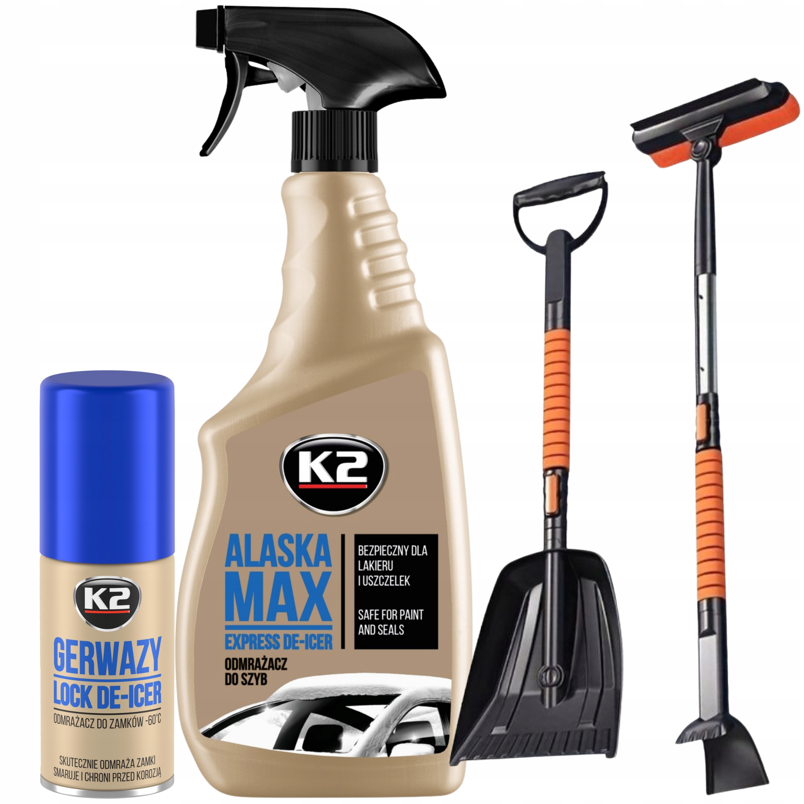 КОМПЛЕКТ K2 ALASKA GERWAZY РАЗМОРАЖИВАТЕЛЬ ДЛЯ ОКОН И ЗАМКОВ + СКРЕБОК SKR9 ДЛЯ АВТОМОБИЛЯ