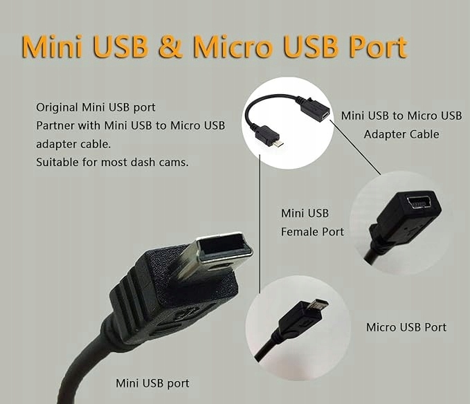 - 【ШИРОКАЯ ПРОИЗВОДИТЕЛЬНОСТЬ】 Комплект кабелей длиной 4 м для видеорегистратора или другого устройства с питанием от порта Mini USB и порта Micro USB, фиксированный выход 5 В/2 А, входное напряжение от 12 В до 24 В. Совместим практически со всеми марками видеорегистраторов. рынке.