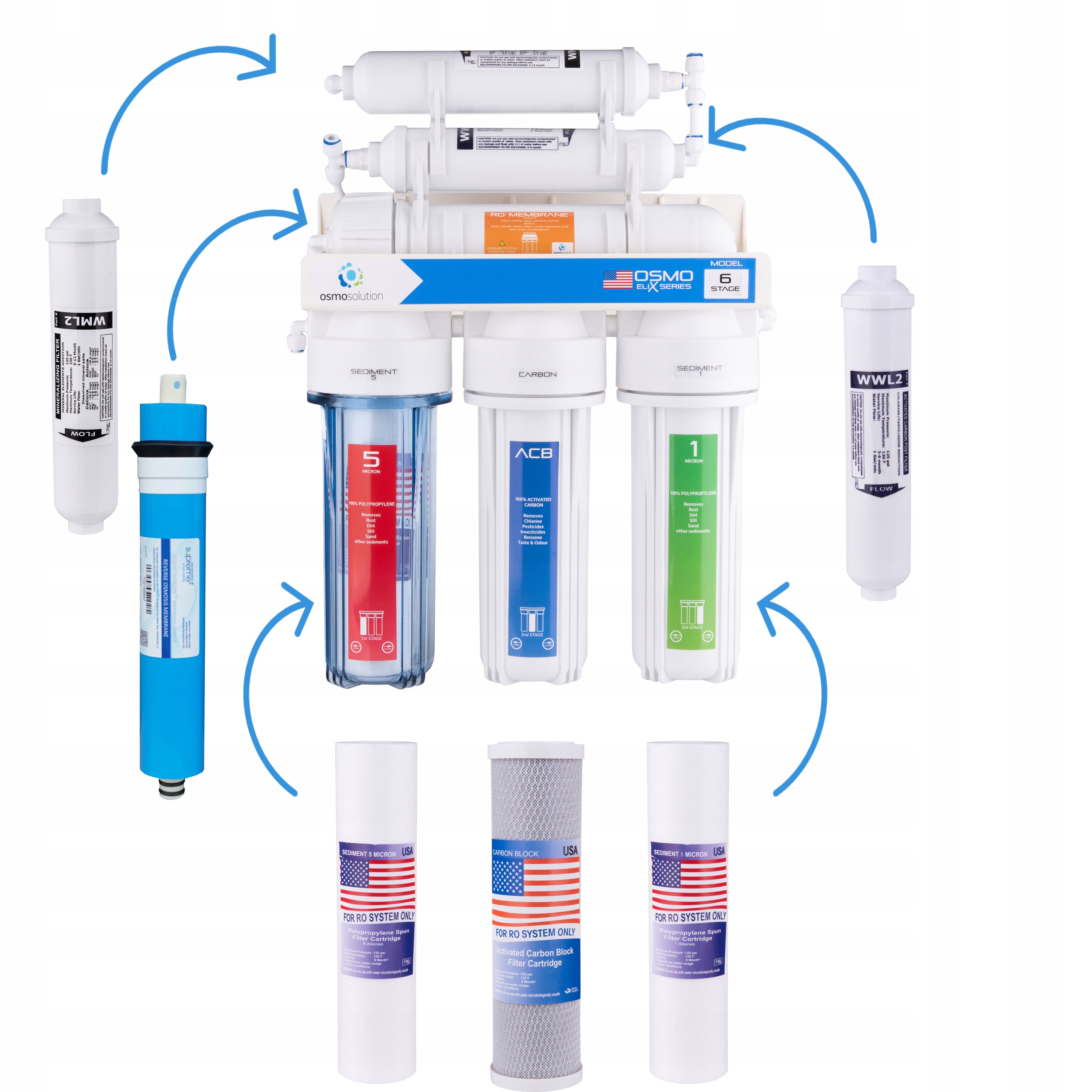 Набор фильтрующих картриджей RO6 + осмотическая мембрана SUPREME 75GPD