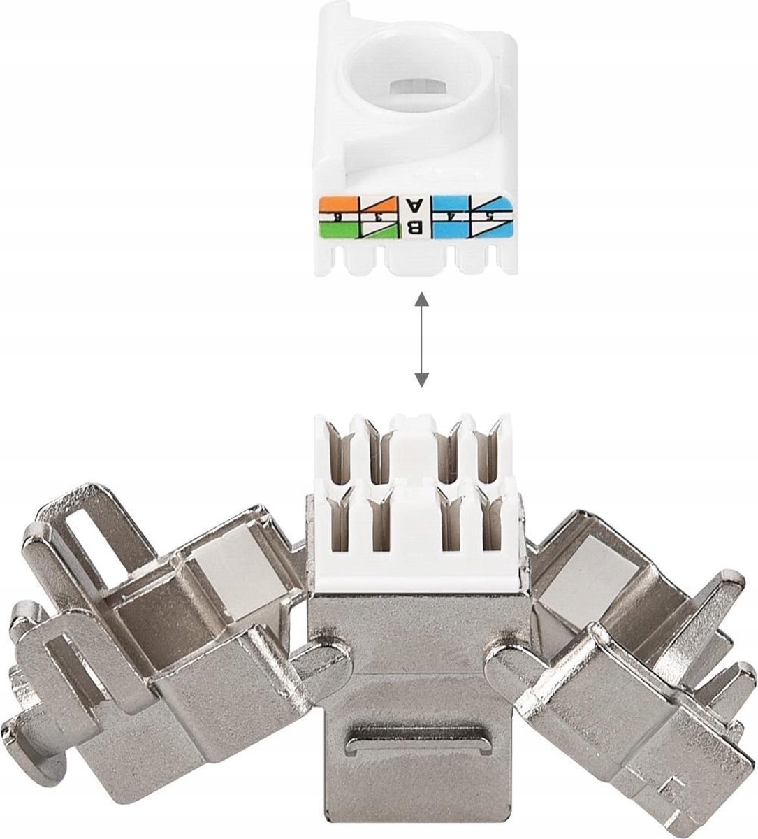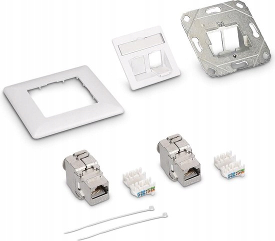 Благодаря стандартизированному соединению модуль Keystone можно просто вставить в розетку. Затем вы можете закрепить кабели Cat.6A в адаптерах. Вилка экранирована металлическим корпусом для лучшего соединения и защиты передачи. Таким образом вы предотвратите потерю сигнала. Установка проста: вы прикрепляете адаптеры к розетке с помощью системы защелкивания. В комплект входят адаптеры Keystone и настенные розетки для использования дома или в офисе.