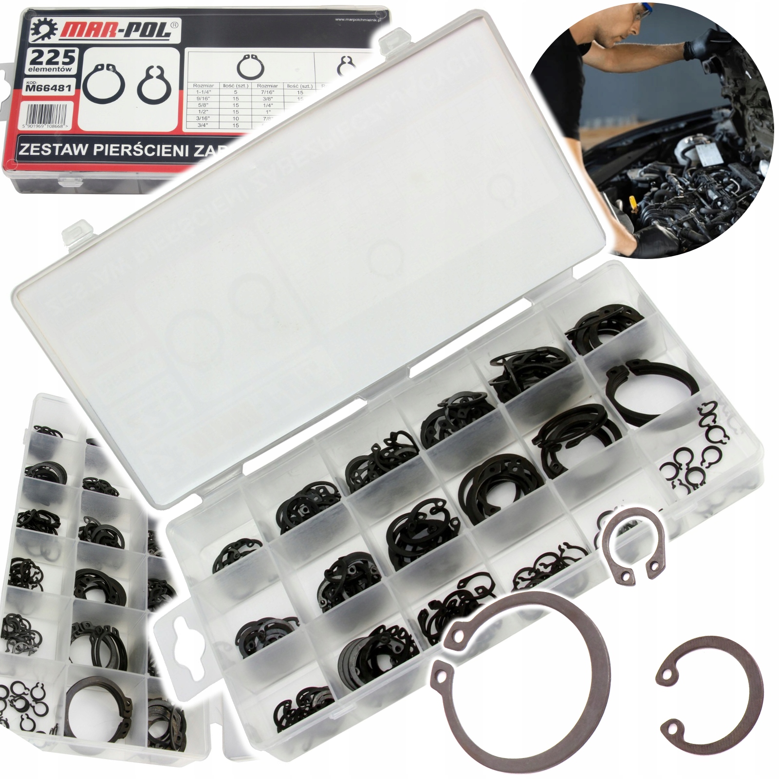 ✅Качественный комплект крепежных колец MAR-POL, состоящий из 225 элементов, упакованных в удобный сортировщик, является незаменимым элементом каждой мастерской.