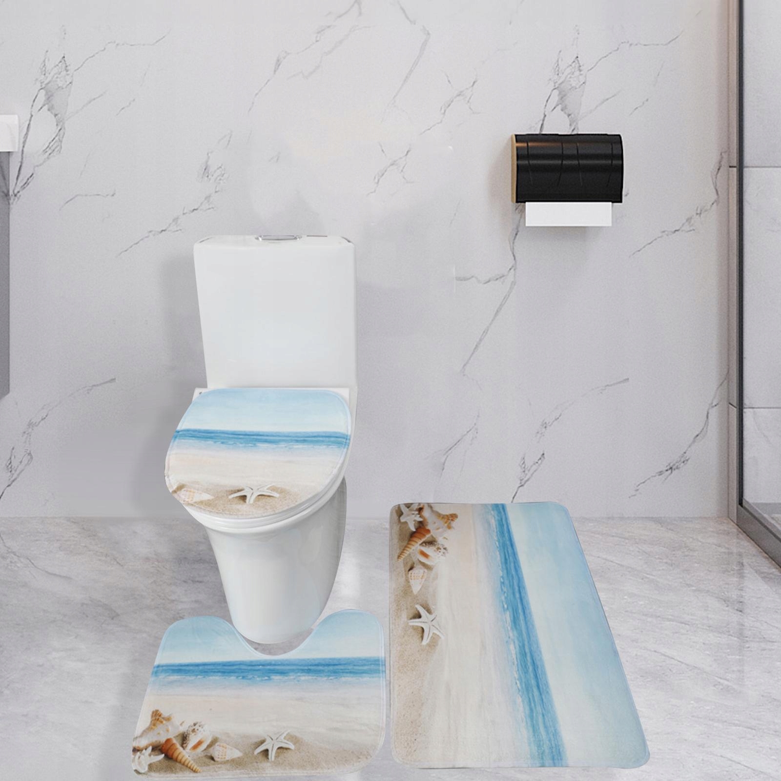 [Набор из 3 предметов]: в комплект входит 1 коврик, 1 U-образный коврик для унитаза, 1 чехол для сиденья унитаза.