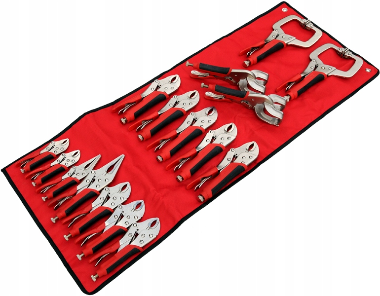 - 2 самоконтрящихся плоскогубца С диаметром 280 мм для секций, для общих работ. Стальные клещи с защелками и большой пряжкой. Они позволяют осуществлять быстрое точечное сжатие материалов при сверлении, сварке и клепке. Форма струбцины позволяет зажимать материалы различной формы.