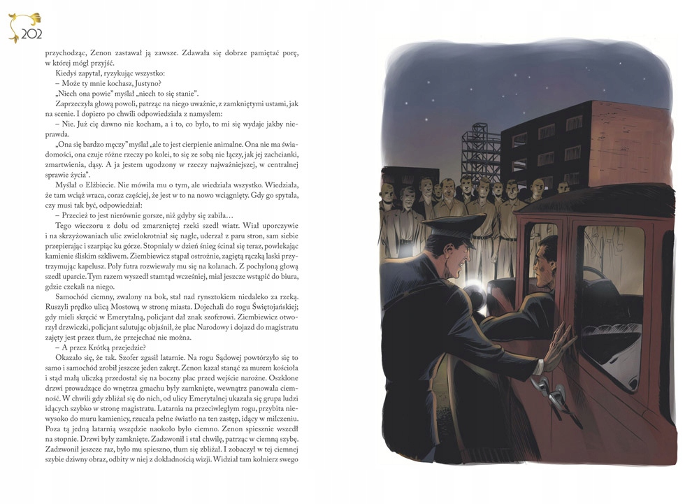 Снаружи твердая лакированная обложка (есть и мягкая обложка других оттенков), а внутри белая, плотная и слегка скользкая бумага с декором возле номера страницы (...) Все оформлено красочные иллюстрации Лукаша Цячуха – на всю страницу или с декорированием их фрагментами. Цена тоже невысокая – книгу в твердом переплете можно купить в книжных интернет-магазинах за 13-20 злотых, а в супермаркете, возможно, еще дешевле. Визуально все это производит положительное впечатление - надеюсь, чтение принесет больше удовольствия и я не разочаруюсь быстро :)