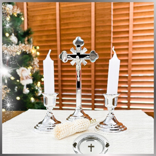 Komplet kolędowy PEŁNY ZESTAW NA KOLĘDĘ świece kropidło miseczka krzyż