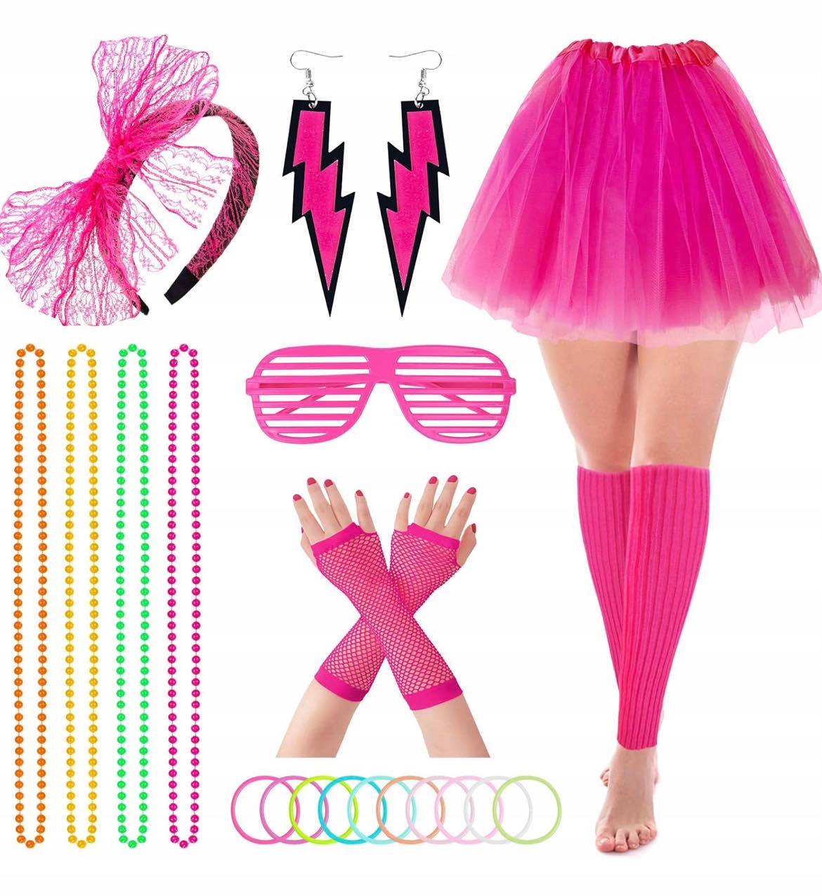 КОМПЛЕКТ КОМПЛЕКТІВ 1980-х НЕОНОВІ СЕРЕЖКИ НАМИСТО СПІДНИЦЯ ДИСКО РУКАВИЧКИ 8в1